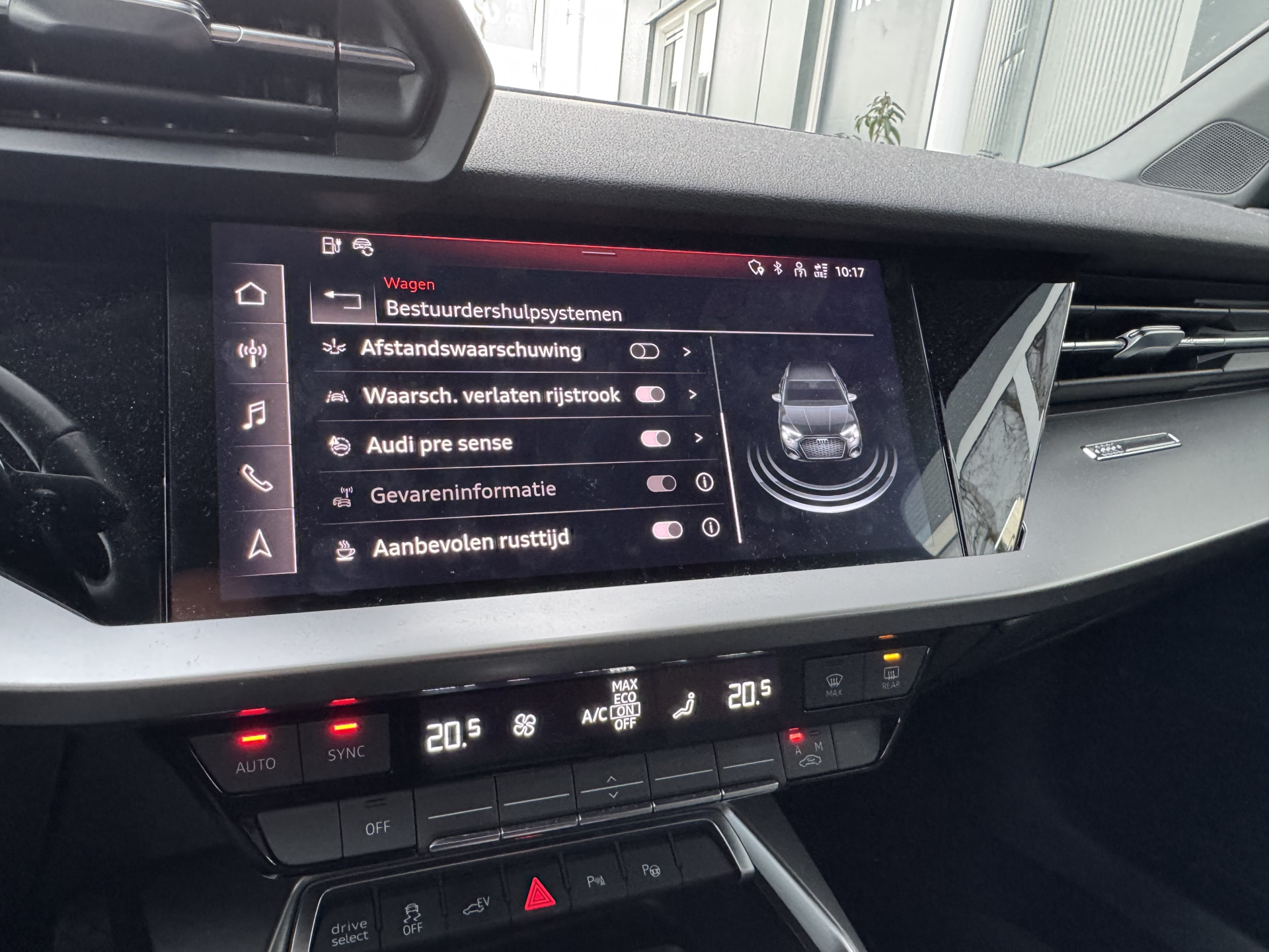In de Audi A3 Sportback heeft uw veiligheid en die van uw omgeving prioriteit. In het instrumentarium kunt u bovendien de verkeersborden zien die u onderweg tegenkomt. Zo helpt deze Audi u om veiliger te rijden. Indien u onbedoeld de rijstrook lijkt te verlaten, reageert het Lane-keeping systeem meteen en corrigeert. Deze Audi A3 Sportback is voorzien van Brake Assist, die extra remkracht geeft bij een noodstop. Ook helpen het hill hold functie en bandenspanningcontrolesysteem, uw rit tot een veilige rit te maken.