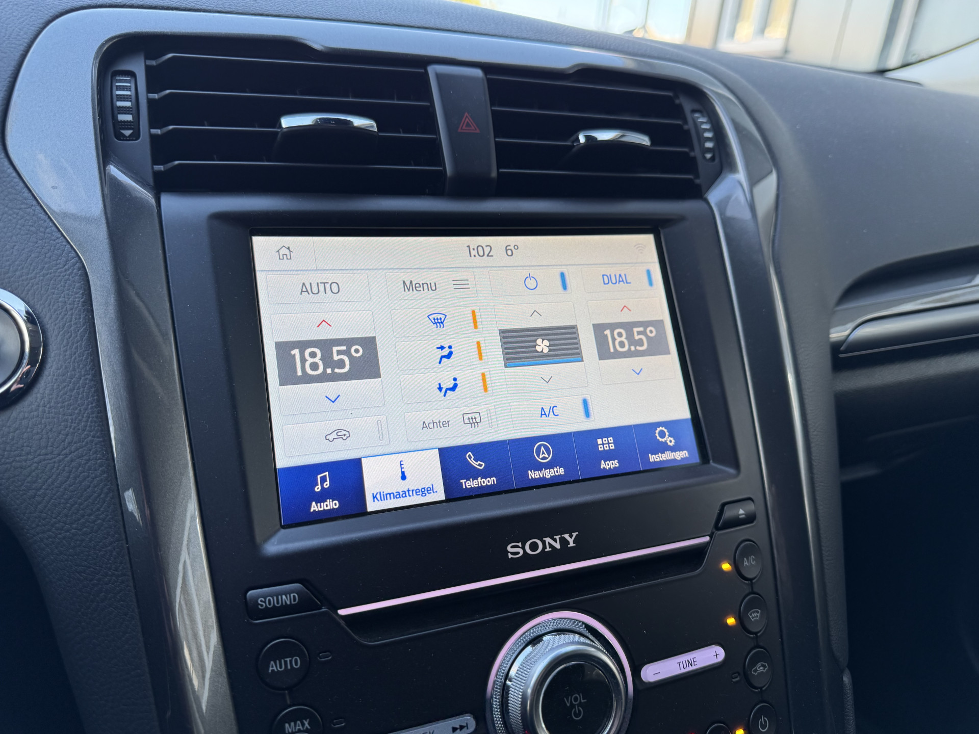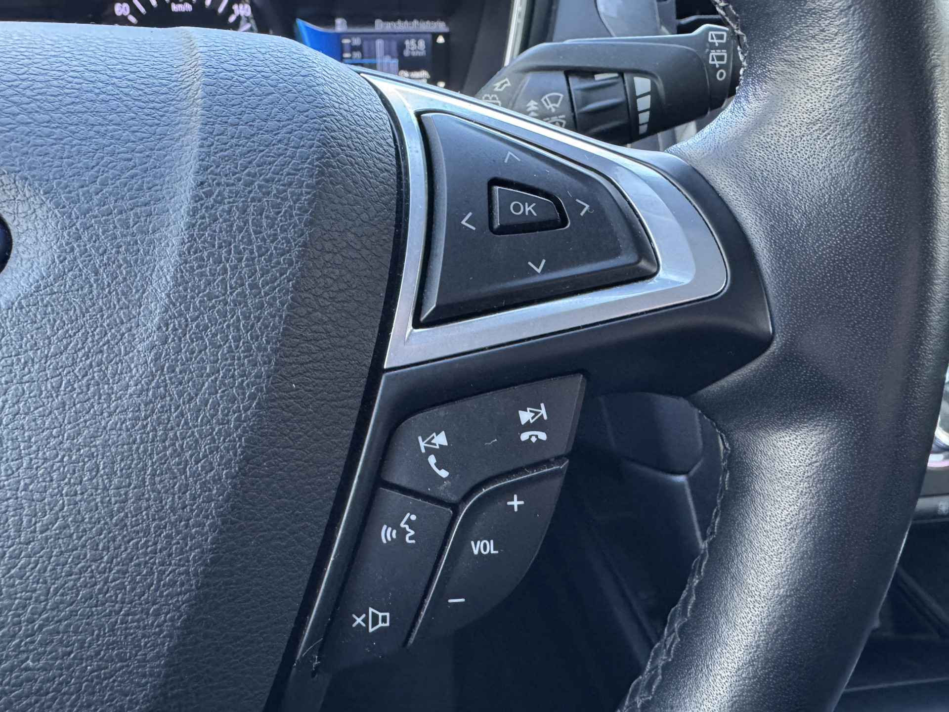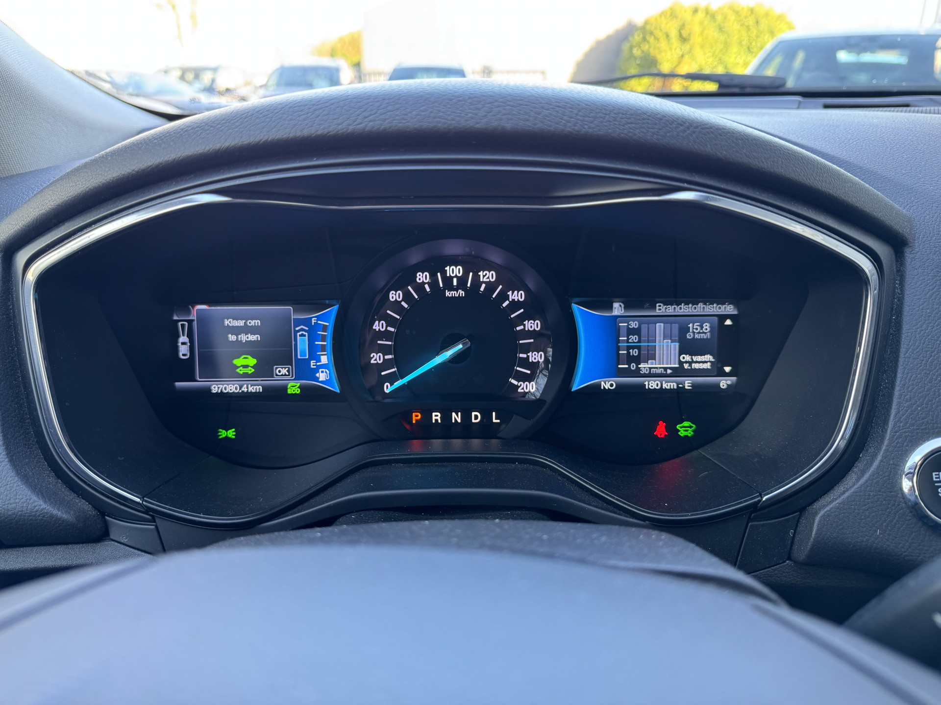 Zodra u naar de 'R' schakelt, gaat de achteruitrijcamera in werking en heeft u een perfect zicht op alles wat zich achter de auto afspeelt. Adaptive cruise control houdt de ingestelde snelheid vast en houdt automatisch afstand tot uw voorligger. Dankzij Connected Services houdt u de auto nog gemakkelijker in topconditie. Elke dag. Het comfort wordt verhoogd door de aanwezige automatische airconditioning. Het drukke verkeer eist onderweg al uw aandacht op. Daarom is het goed dat deze Ford is voorzien van diverse systemen die u assisteren tijdens de rit. Een automatisch inschakelbare verlichting neemt het waar als het donker wordt of gaat schemeren, en schakelt dan automatisch de verlichting in. Op dezelfde manier "ziet" de regensensor de eerste spatjes regen en schakelt dan de ruitenwissers in, en als het harder gaat regenen zet hij de ruitenwissers ook in een snellere stand. Wat u ook in deze auto kunt vinden zijn dashboard met spraakbediening, full map navigatiesysteem, DAB ontvangst, keyless entry, automatisch dimmende binnenspiegel en lederen stuur.