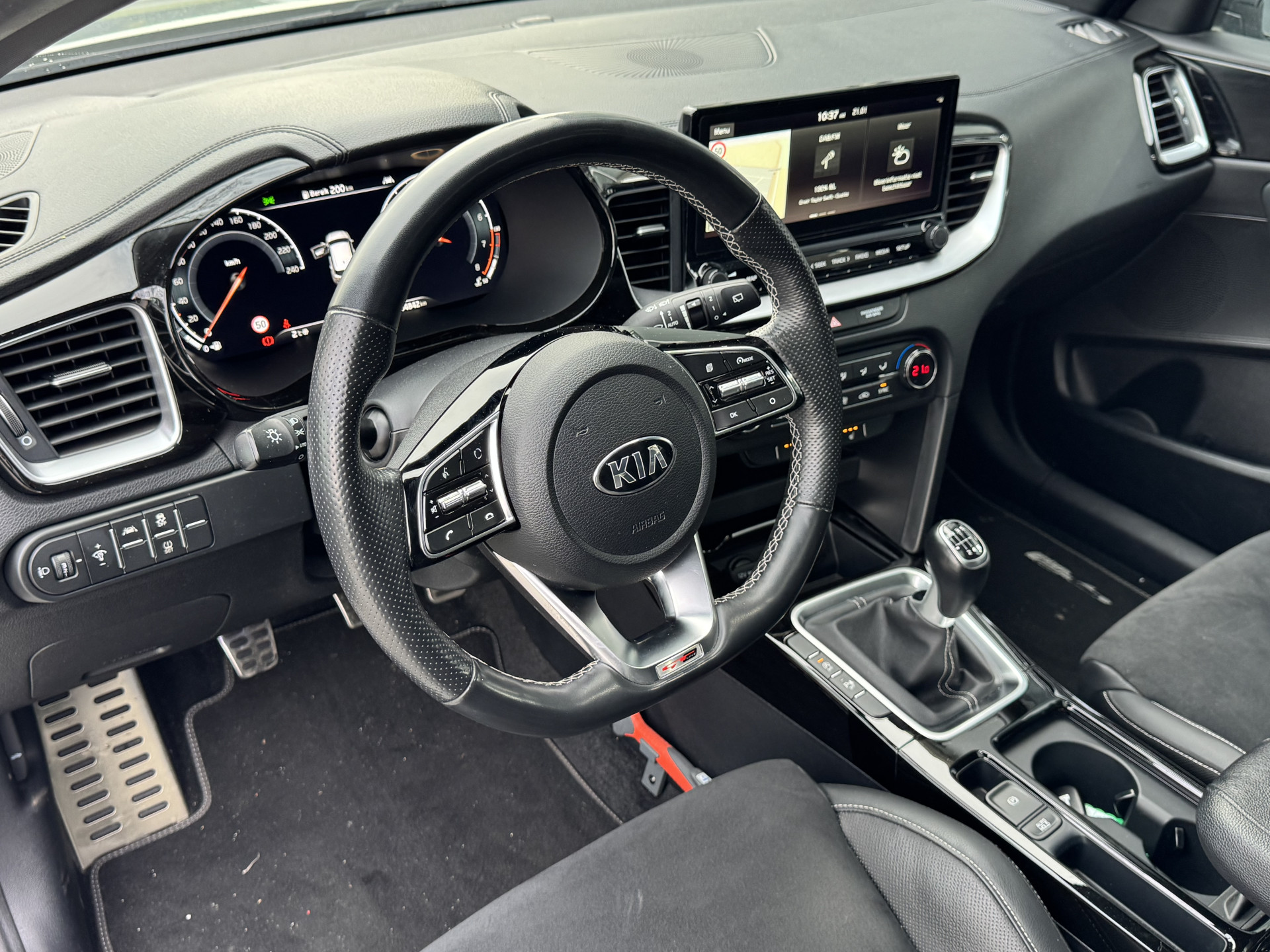Met zijn geweldige prestaties en dynamische uiterlijk laat deze sportieve eyecatcher het hart van veel autoliefhebbers sneller kloppen. We hebben het hier over een Kia Ceed die 84842 kilometer heeft gelopen. Het bouwjaar is 2020. Met zijn benzinemotor en handgeschakelde zesversnellingsbak is dit een prima auto voor nog vele kilometers. Voorin is het 's winters genieten met de verwarmbare voorstoelen voor zowel bestuurder als bijrijder. U blijft ook in de scherpe bochten goed ondersteund door de fraaie sportstoelen. Het interieur glanst in daglicht door het elektrisch bedienbare panoramadak. Stramme vingers krijgen 's winters een VIP-behandeling van het verwarmd stuurwiel. Bij de uitrusting van deze auto horen onder meer 17 inch lichtmetalen velgen, LED koplampen, zwarte hemelbekleding, donker getint glas achter, in delen neerklapbare achterbank en LED-achterlichten.