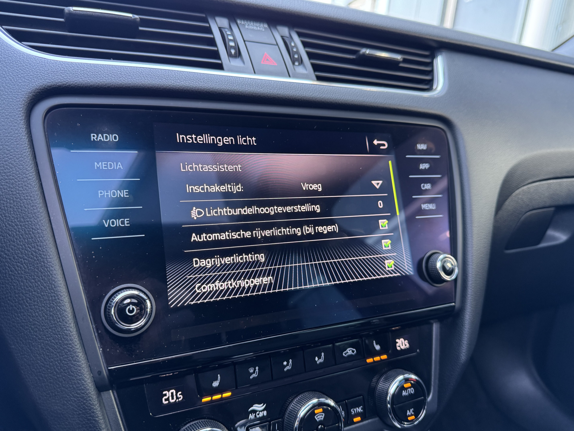 Praat tegen deze auto en de auto doet wat u wilt dankzij de ingebouwde spraakbediening. Het navigatiesysteem zorgt ervoor dat u snel en ontspannen op uw bestemming aankomt. Dankzij automatische airconditioning is het interieur behaaglijk warm of verfrissend koel. Is uw smartphone geschikt voor snoerloos opladen? Dan zorgt de draadloze oplaadmogelijkheid voor telefoons weer voor een volle accu zonder snoeren en stekkers. Met de DAB-ontvanger heeft u keuze uit talloze digitale radiozenders met de allerhoogste geluidskwaliteit. Deze ŠKODA is voorzien van schakelpaddles aan het stuur, parkeersensoren achter, regensensor, cruise control, automatisch dimmende buitenspiegels en centrale deurvergrendeling met afstandsbediening.